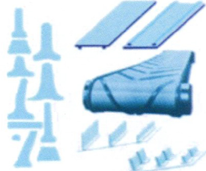 對于傾斜輸送或散裝貨物輸送等有特殊要求的,嘉鑫公司可提供各種形狀及尺寸的導條、擋板和裙邊。